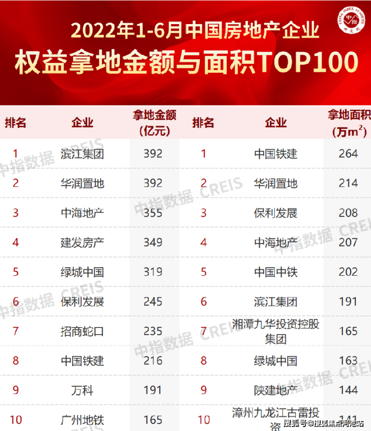2022年1-6月集团完成销售额683.93亿,位列克尔瑞中国房企销售榜TOP13,在上半年全国房地产企业权益拿地金额与面积排行榜中,滨江集团位列TOP1。