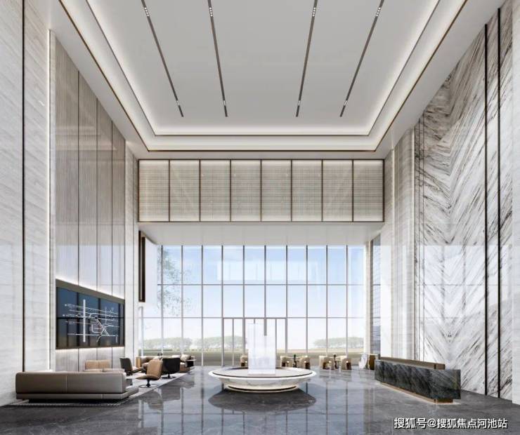 近12米挑高奢贵大堂,极具质感艺境。约4.5米层高灵活迭变空间,大面宽玻璃揽胜视界,俯瞰一城价值风景。