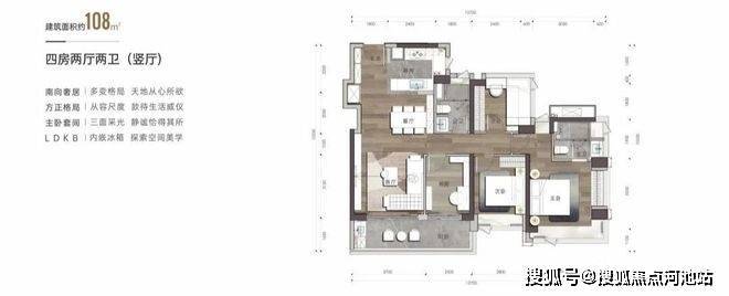 建筑面积约108㎡户型-4房2卫(竖厅)