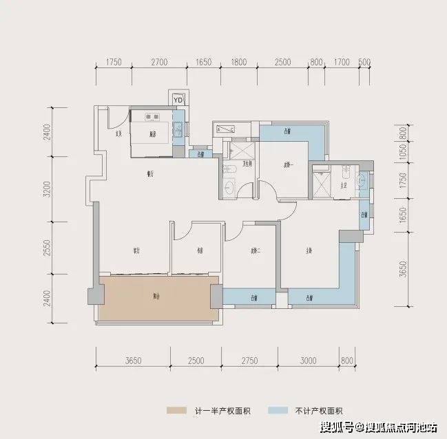 89㎡3房横厅户型使用率,赠送面积达到了22.92㎡,地毯率达到了92.57%,套内加赠送使用率能达到102.58%。
