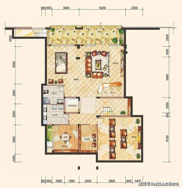 D1户型,双拼别墅,5房3厅6卫,超大空间,观影、品茶、健身,自由挥洒,奢阔的地下拓展空间足以纳藏全家爱好。