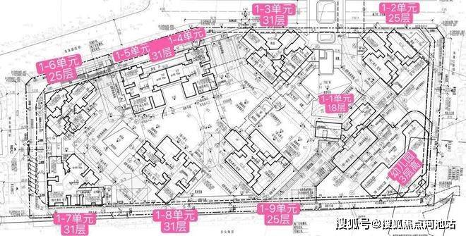 其中一期占地3万平米,总建面22.7万,共9栋住宅➕1栋幼儿园组成,容积率5.27。
