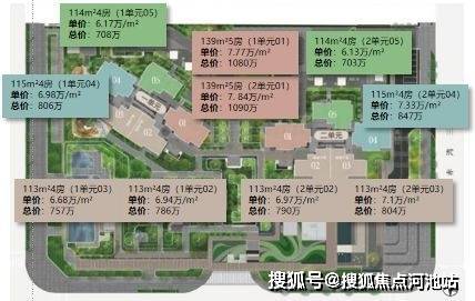 139㎡:2单元01户型(7.84万/㎡)大于1单元01户型(7.77万/㎡),价差约1000元/㎡;