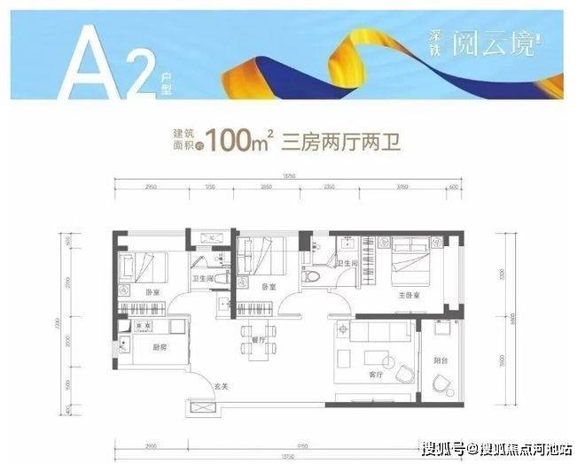 面积:96-106㎡三房两卫