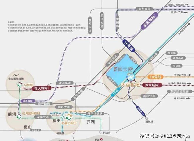 交通配套:交通配套以"四线交汇"为核心优势,打造深圳东部最便捷的TOD交通网络8920。项目位于大运枢纽站上盖,该枢纽是深圳东部最大的综合交通枢纽,集地铁3号线、14号线、16号线和深大城际(33号线)四线于一体,实现站内无缝换乘321。地铁3号线可直达罗湖(6站)、福田岗厦北(8站);14号线可快速到达福田中心区;16号线连接龙岗与坪山;深大城际预计2026年11月开通,可直达宝安T4枢纽(7站)和惠州大亚湾(需换乘)。
