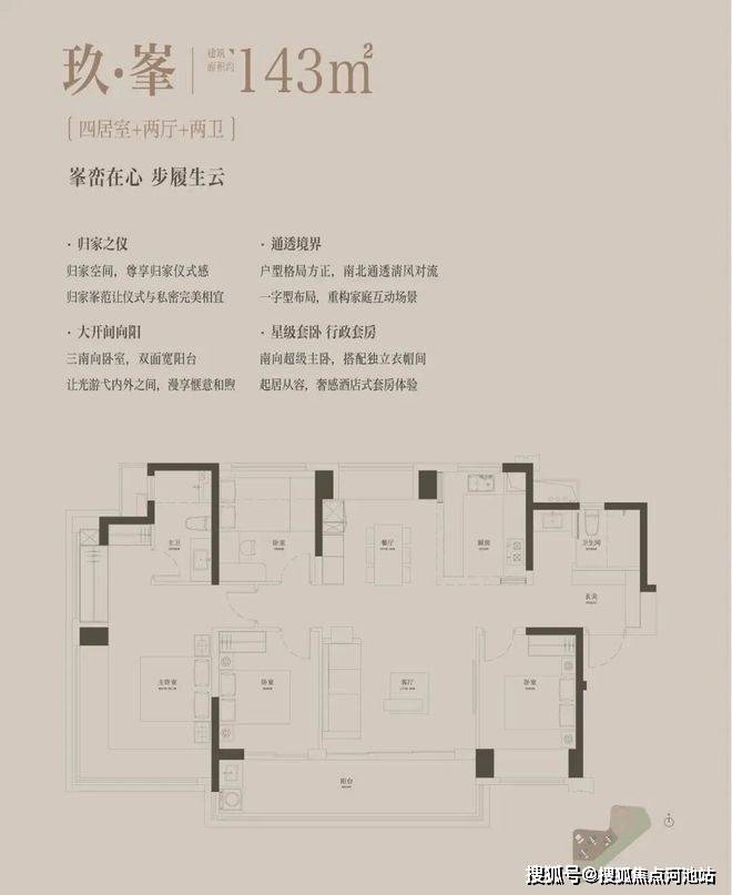 143㎡四房两卫,折后总价区间681-840万,单价区间4.73-5.85万/㎡;