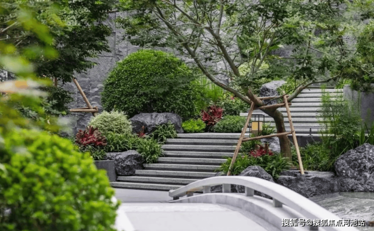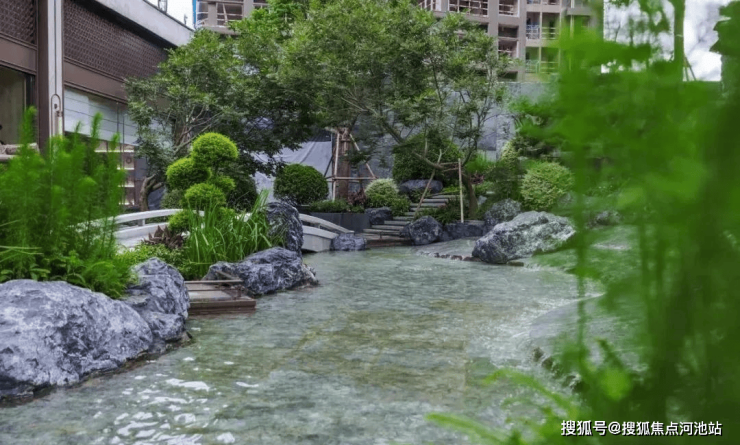 龙华首个新中式岭南园林社区,鹏宸云筑大规模运用了岭南建筑美学,通过提取丰富的岭南元素,东区借鉴了岭南四大名园之一的“可园”,用现代手法重新演绎,建造出一座约3.4万平方米的岭南东方诗意园林景观,利用场地高度差特点,采用叠石理水的传统造园手法,打造青石飞瀑相依的场景。