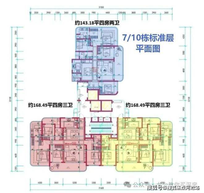 另外还有253-265平4房4卫的大平层豪宅,3套间+西厨。