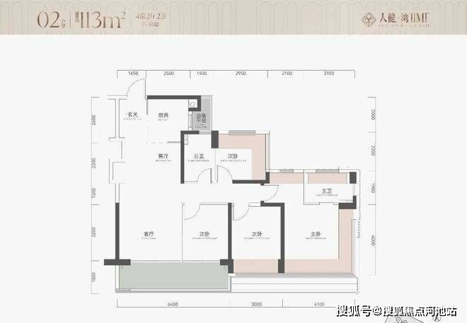 113㎡四房两卫是入门首选,采用竖厅设计,南北通透,6.4米宽大阳台连接客厅与次卧。户型动静分区明确,主卧带独立卫浴和飘窗,实际使用面积接近120㎡,空间利用率极高。这个户型4开间朝南,南向面海,是上车门槛最低的户型。
