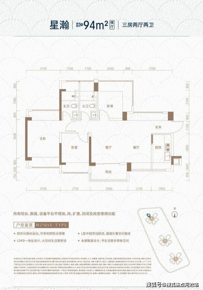 使用率达到了97%-105%,在当前深圳新规基础上还有进一步优化。所有户型均配备LDKB(餐客厅阳台)一体化设计,客厅与次卧处墙体不承重,可根据家庭需求调整功能间配比,可塑性强。