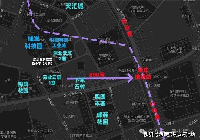 产业配套方面,公明片区以钟表、模具等传统制造业为特色,拥有全国最大的钟表产业集群基地(114万㎡),聚集飞亚达、天王等近900家企业,年产值650亿元,出口占全国50%。同时,光明科学城规划引入科研机构及科技企业超6000家,预计汇聚15万产业人口,驱动区域产城融合。