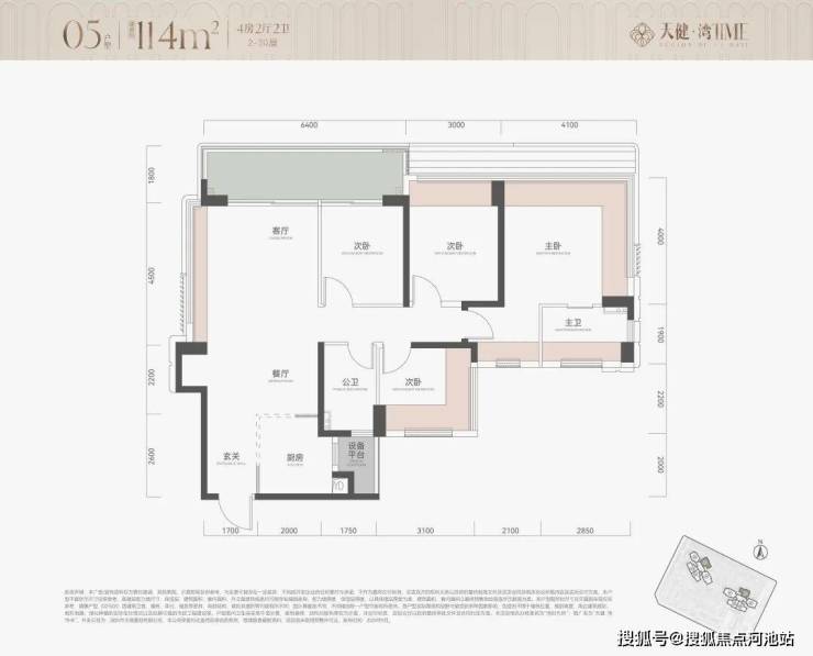 115㎡4房2卫,横厅户型,朝南看海,入户独立玄关,但三个次卧朝北;