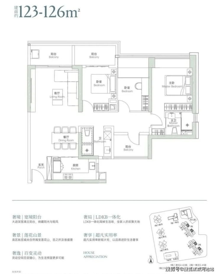 户型出色:120㎡ + 能做四房三卫双套间,公区品质佳,设计合理实用。
