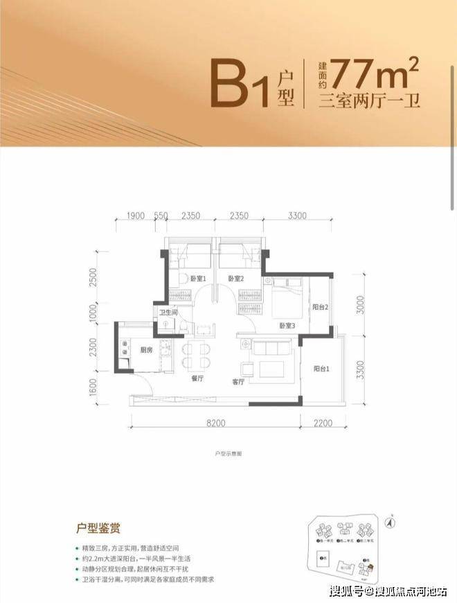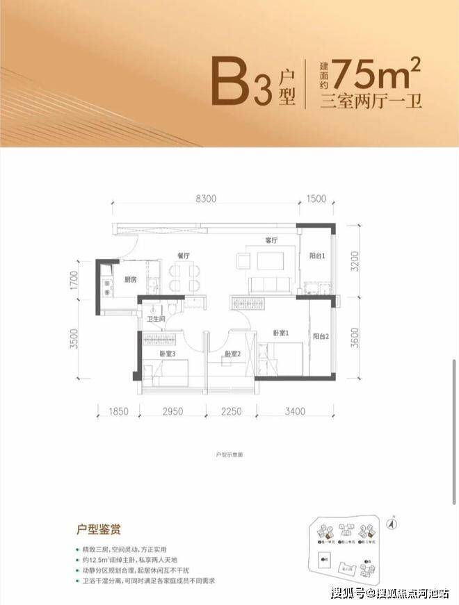 约75-77㎡3房2厅1卫