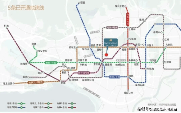 香蜜四季位于深圳福田区核心板块, 1号线香蜜湖站+9号线香梅站双地铁400米直达,深南大道无缝衔接,500米轨道全覆盖,福田南山通勤15分钟,深港双城生活随心切换。