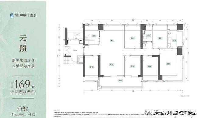 超16米东南采光面,阳台超7米宽;主卧进深4.5米,L型飘窗可270度景观。