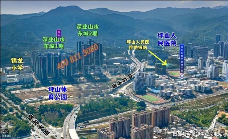 深业山水东城,位于坪山区碧岭街道锦龙大道和振碧路交汇处西南角,从板块来说可以说是属于锦龙片区,属于比较南端的区域,南侧背靠马峦山脉,东侧邻近大山陂水库,西侧毗邻深实验学校高中园,还有坪山人民医院新院区。