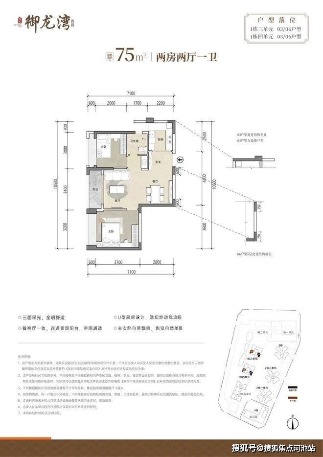我们这个楼盘是深圳龙华区一个建面约60万平的大社区,分东西地块开发,目前首期开盘的是西地块的房源,在售的户型:65-75平的2房,都是双龙抱珠的格局,而且是30层以内的住宅,使用率做的不错。