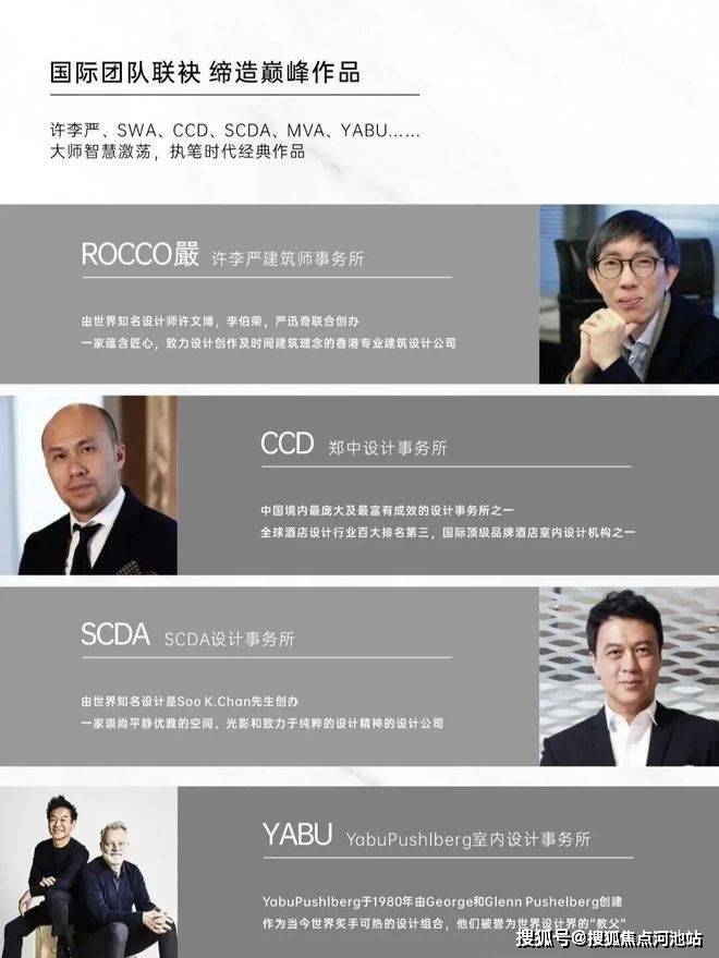 许李严、CCD、SCDA、YABU、ALT、SWA、MVA、迈进等国际顶级大师团队的智慧在此集结。