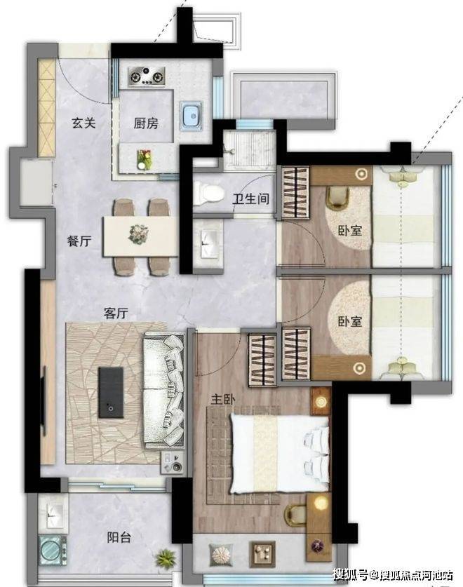 建筑面积约63-112㎡二至四房,新规产品设计,高使用率,空间更实用,欢笑更从容。阳台进深约1.8-2.1m(含墙体),飘窗进深约800mm(部分飘窗),设备平台增加收纳空间,厨房烟道外置增加操作台面。