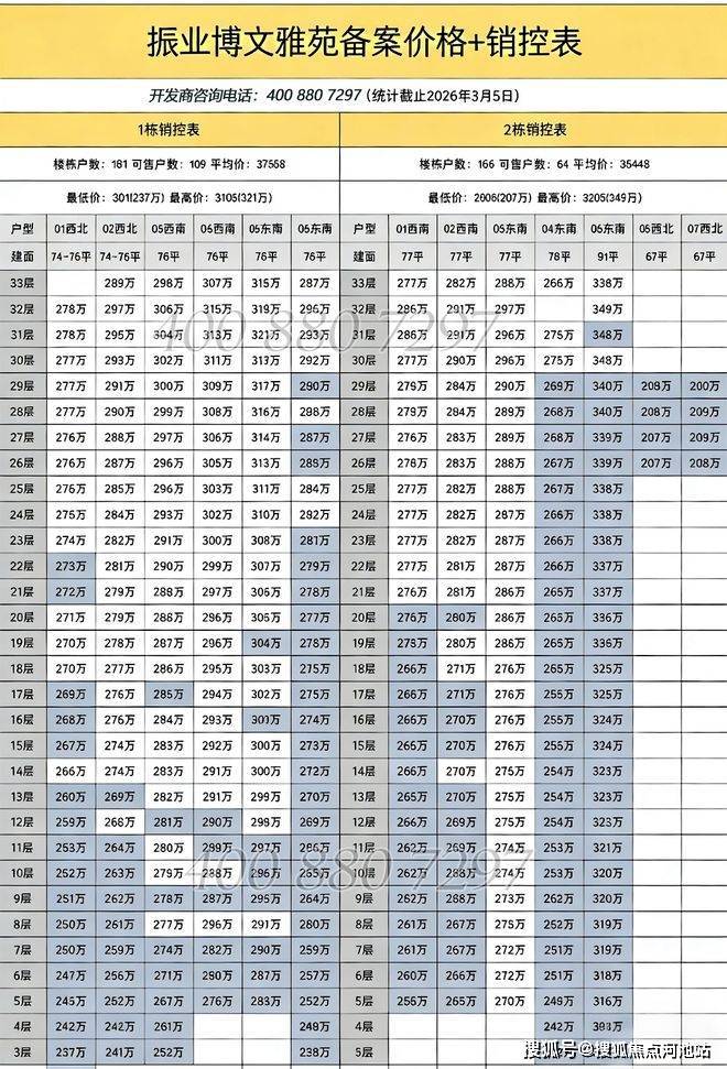 下面是2026年3月份最新销控表