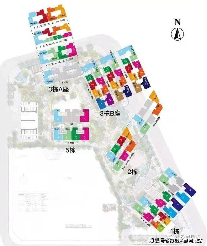 总层数:1栋总47层、2栋总45层、3A栋总28层、3B栋总42层、5栋总15层