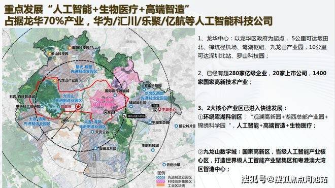 观澜占据龙华70%产业,鹭湖中心城与九龙山数字城双核驱动,聚焦人工智能、生物医疗等高新技术产业;