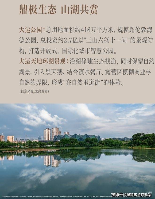 坐享大运公园(约418万㎡)、龙城公园(约189万㎡),环境优美,绿化率超50%,绿化率是福田中心的5倍、前海中心的4倍,是深圳首个“国家级生态示范区”。