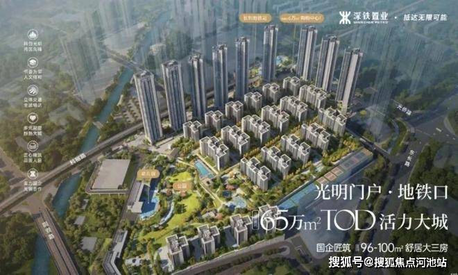 深铁瑞城,由深铁集团打造,位于光明区凤凰街道光桥路与科裕路交汇处,项目所在区位属于光明科学城产业转化区,堪称光明版的南山粤海街道,连续3年蝉联光明区GDP总量第一,在2021年GDP总量为351.9亿元,也是深圳先进制造业新高地,湾区科研经济主阵地,家门口的光侨路串联起光明云谷、科学方舟、凤凰新型产业集群、光明城TOD、华星光电产业集群、长圳TOD、玉塘新型产业集群,被称为光明版的“深南大道”。