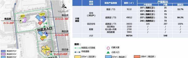 用地面积为约3.3万㎡,开发建设用地面积约1.5万㎡平方米,建筑面积约9.88万㎡,容积率为6.5,其中住宅约8.8万㎡,商业2100㎡,公共配套设施约8205㎡。