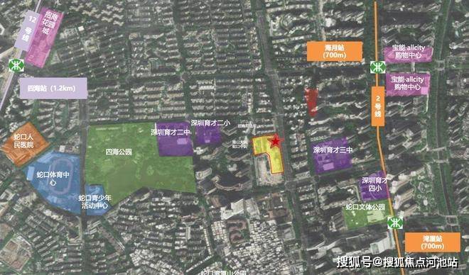 交通:项目位于2号线海月站和湾厦站之间,直线距离约500m左右,2站抵达后海站,可换乘11号/13号地铁线,2站直达福田、前海。距离12号线四海站直线距离1.2Km。