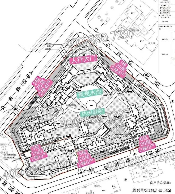 总高25层,层高3米,楼栋间距普遍在20米以上