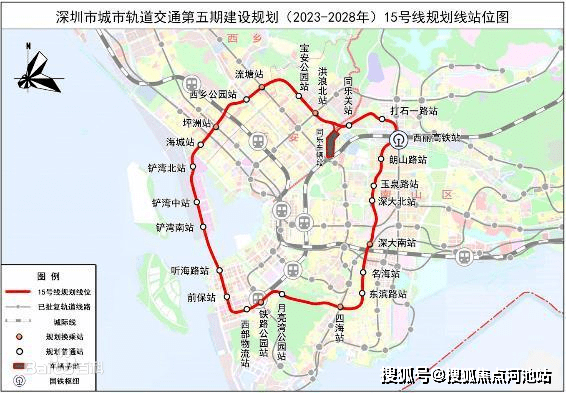 其中,地铁15号线把前海湾、大铲湾、留仙洞总部基地、西丽交通枢纽、南山高新科技园串在一起,是深圳最有价值的一个圈。