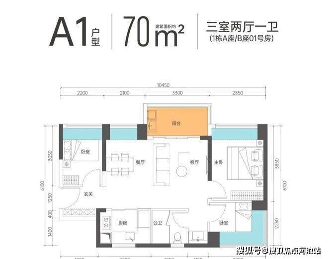 位于深圳市坪山高新区大学城的传承启元是这两年入市的新房中,最小面积的3房,仅70㎡,其中A1户型还是横厅设计,户型可以说是相当“炸裂”了。