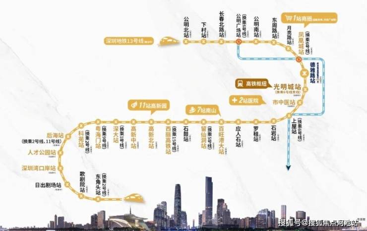观玥名邸家门口就是13号地铁线“德雅路站”,以前的同观路站已经改名,最高时速100公里,预计2025年开通运营,1站可到光明城站,换乘6号线/光明城高铁站,3站可到石岩,7站到西丽,8站到留仙洞总部基地,11站到南山高新园。