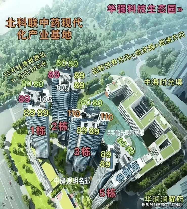 5、靠近凤凰城核心区,占光明科创"半壁江山",产业人口爆发增长,周边有光明新城公园、虹桥公园(约1公里),生态景观资源丰富。