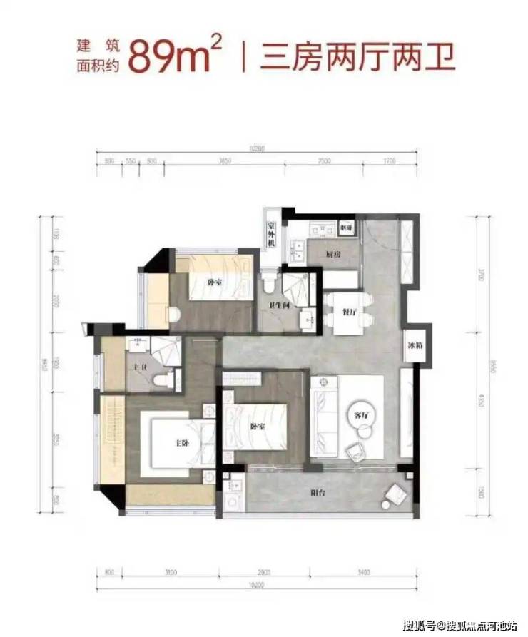 【建筑面积89㎡3房2卫】