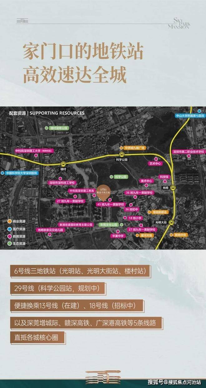 项目坐拥6号线光明站、光明大街站双地铁站(楼村站”约950米),未来通过延伸段可一线直达光明城高铁站,可换乘地铁13号线(在建)、18号线(招标中),以及深莞增城际、赣深高铁、广深港高铁等5条线路!目前6号线延长段均在建中,预计2025年即可开通。
