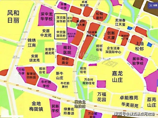 1、首先从区位来看,中交国润华府所处的龙华民治老中心区板块,周边是大家熟知的风和日丽,锦绣江南这些楼盘,西北侧是壹城中心,西南侧邻居民治跟红山板块,区位是比较不错的,在龙华而言也算是第二梯队的板块。