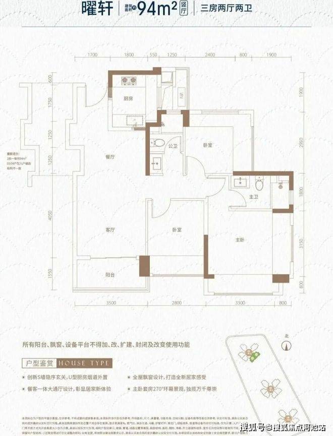 94㎡的3房2厅2卫(-1),设计的是经典竖厅格局,进门入户玄关,客厅3.7米开间,LDKB一体化,S墙设计预留冰箱卡槽位,动静分区,三开间朝南,U型厨房,公卫三段式分离,还带1个设备平台,东南朝向。