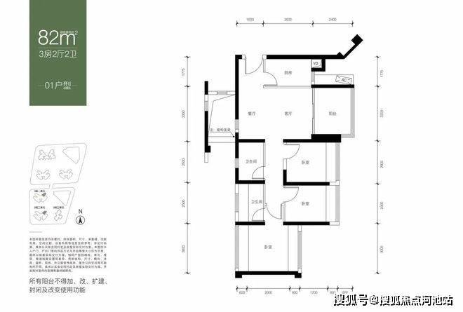 全新2期 震撼来袭 82-89㎡3房2卫 宝藏户型