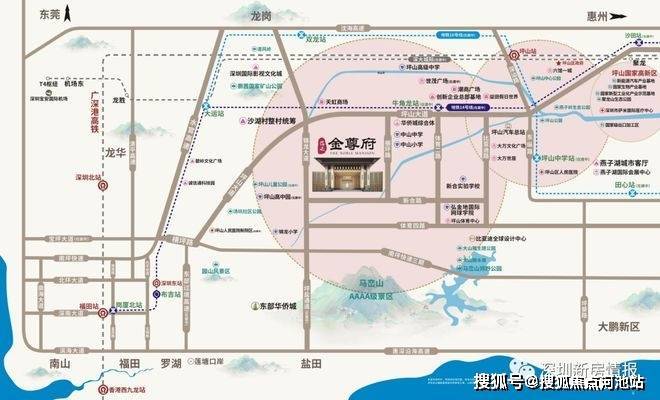 金尊府位于 坪山高铁站的南侧约3.3公里