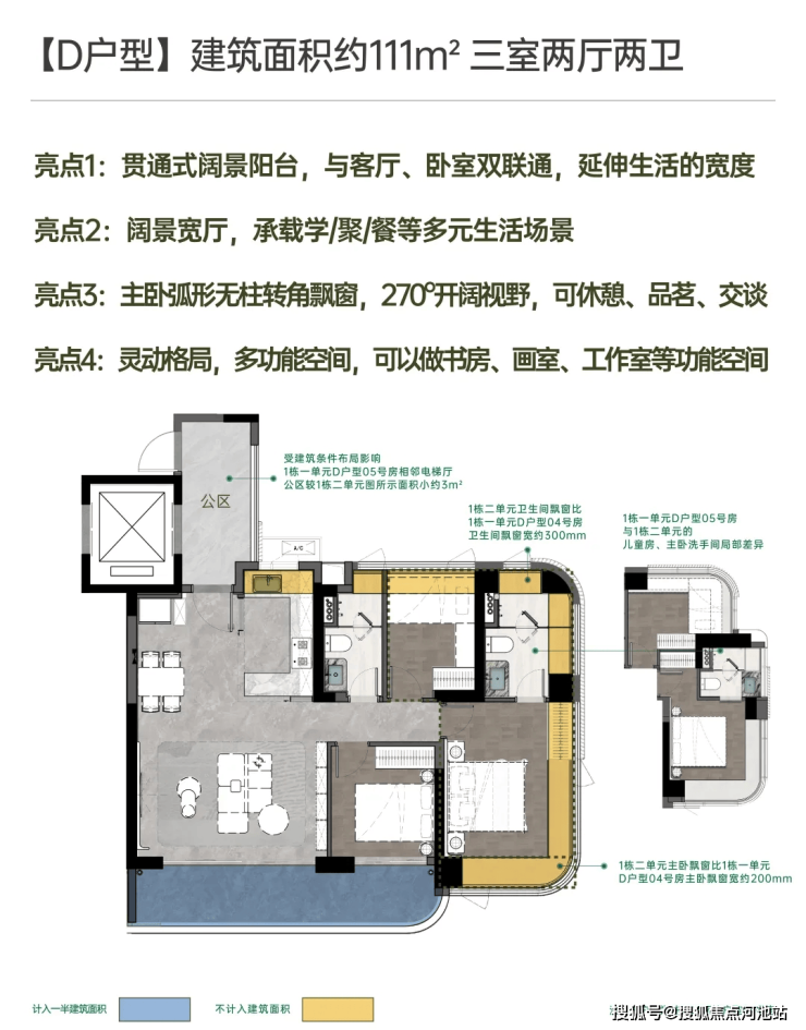 建面约111㎡宽厅阔景 灵动三房;