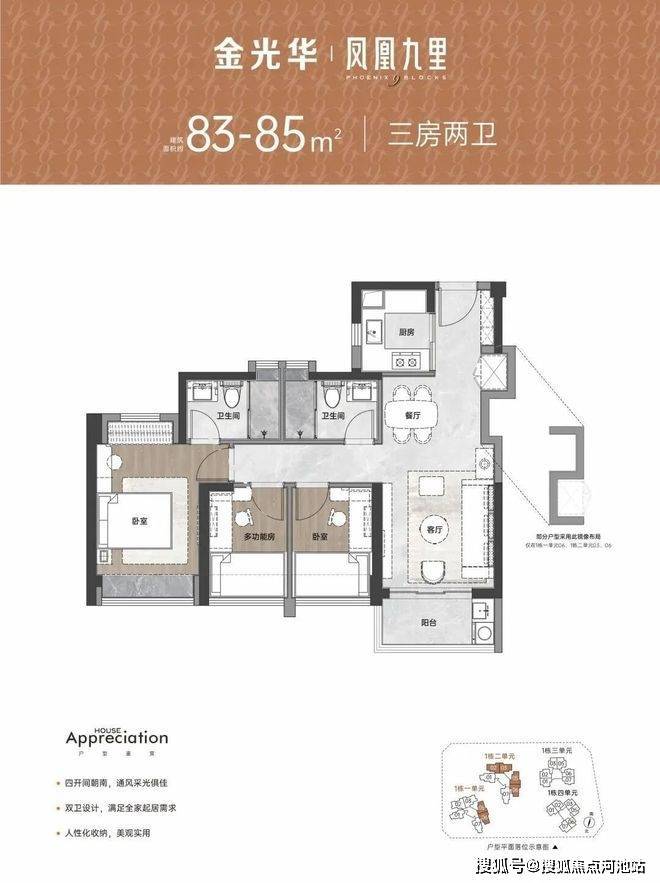 【建筑面积85㎡3房2卫】
