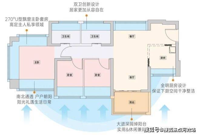双卫设计一般在90㎡户型配备,而约82㎡户型创新超配双卫。家庭成员上班、上学的早高峰,也能轻松应对。