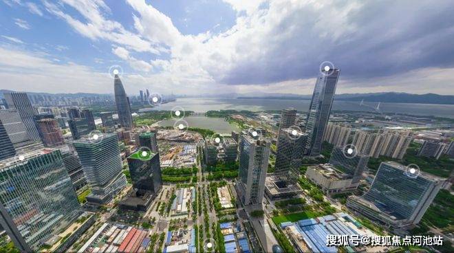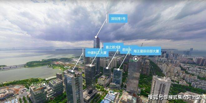 通过航拍图可看到,东侧的阿里巴巴大厦(78.4米)、中科建工(162米)。如果层高和深湾玖序一样(3.3米),算上底商和会所的高度,大概24层以上就有不错景观。