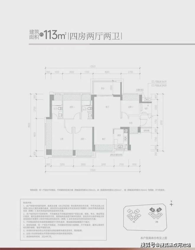 -113㎡的4房2厅2卫,设计的竖厅南北通透格局,客厅4米开间,进门独立玄关,4个卧室分别做到了4米/2.8米/2.7米/2.6米的宽度,U型厨房,公卫三段式分离设计,得房率约:95%(包含赠送),阳台主朝西北或东北向,看科学公园景观。