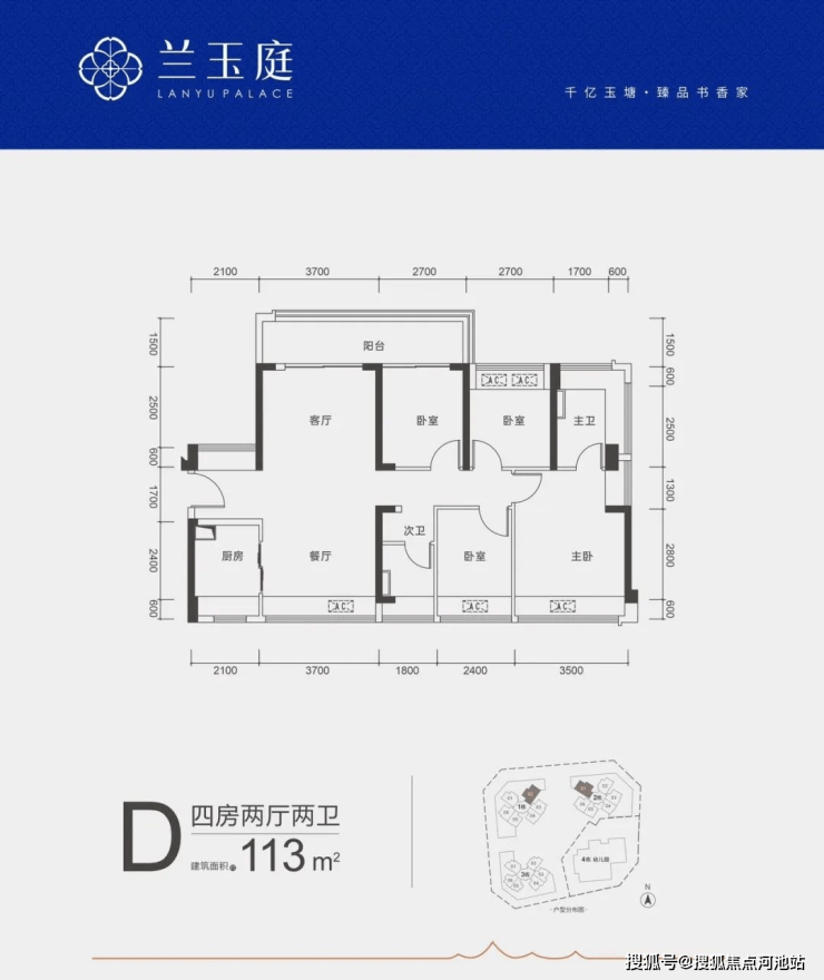 01户型113㎡4房2厅2卫,折后总价:333万-371万,单价:2.94-3.28万/㎡