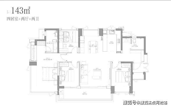 项目产品户型图可以看出,全部都是带大阳台的通透产品、主卧带270°大飘窗。
