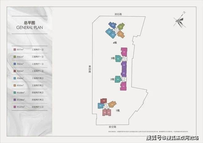 :主推77-137㎡三至四房,得房率近100%